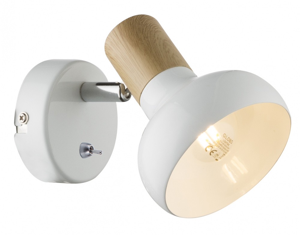 Rivoli Lorena - металлический спот белого матового цвета с отделкой элементов под светлое дерево. Один плафон под лампу Е14 40 Вт. Спот поворотный - вы с удобством и в любой момент сможете регулировать направление освещения. Это преимущество делает данный светильник идеальным вариантом бра над кроватью, бра над столом, бра в спальню, бра в прихожую. Настенно-потолочный спот с выключателем на корпусе. Выключатель и миниатюрный рожок плафона имеют красивое хромированное покрытие.