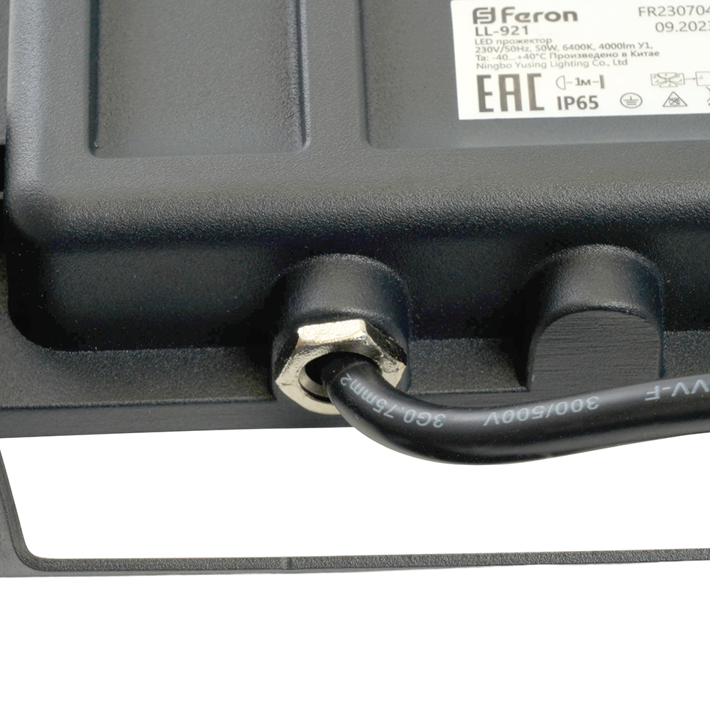 Прожектор светодиодный многоматричный с монтажным креплением на кронштейн, (ДО) FERON LL-921, 50W, 6400К (холодный белый), 230V/50Гц, 5000Lm, IP65, угол рассеивания 120°,*SMD2835, раб.t -40°C - +40°C, цвет чёрный, корпус алюминий литой под давлением + стекло, 174*151*29 мм