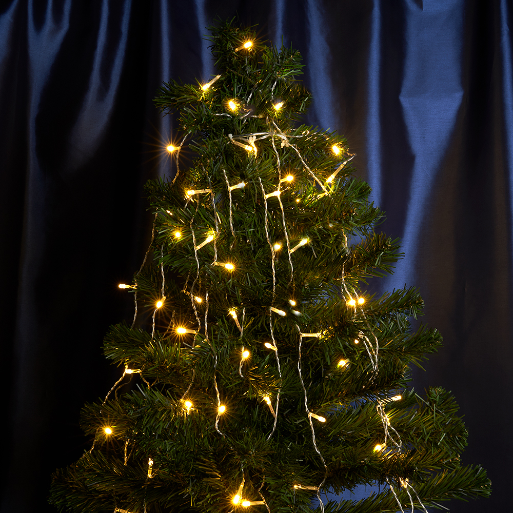 Гирлянда на елку FERON CL90, 140LED, 2700К (теплый белый), настраивается контроллером, 2м+1,5м прозрачный шнур, расстояние между светодиодами 10см, IP20, 8,4W, от сети 230V, последовательное подключение - НЕТ
