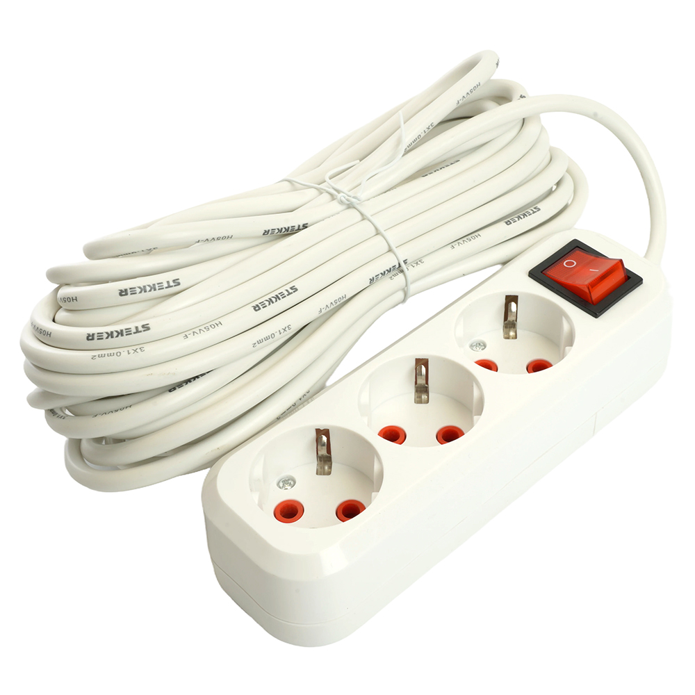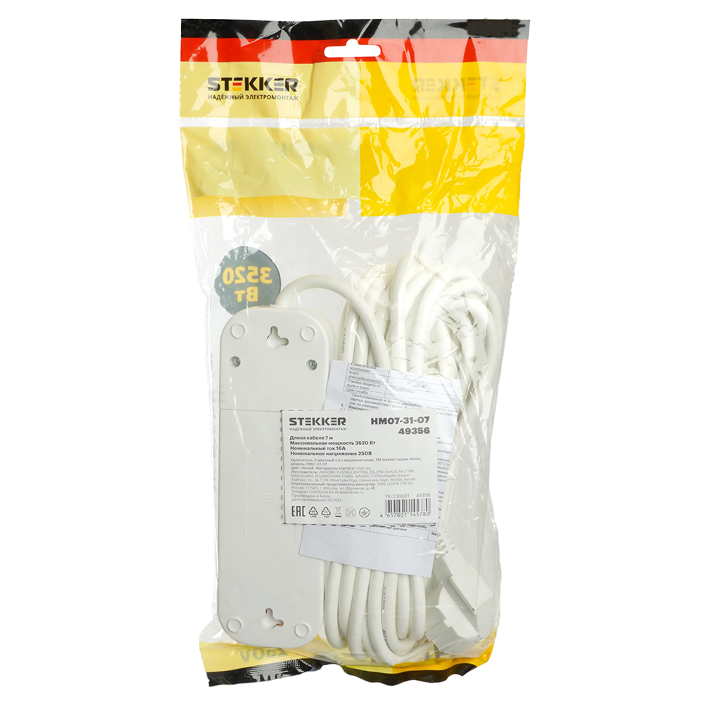 Удлинители STEKKER 49356, серия Home, цвет белый, длина 7 м, количество розеток 3, сталь, сечение кабеля 1 мм2, тип кабеля ПВС, материал кабеля -, ток 16А, напряжение 250В, максимальная нагрузка 3520Вт, тип вилки - прямая. Диапазон рабочих температур +1..+35°C, степень защиты IP20, класс защиты от поражения эл. током 1, размеры изделия -*-*-. Гарантия 1 год.