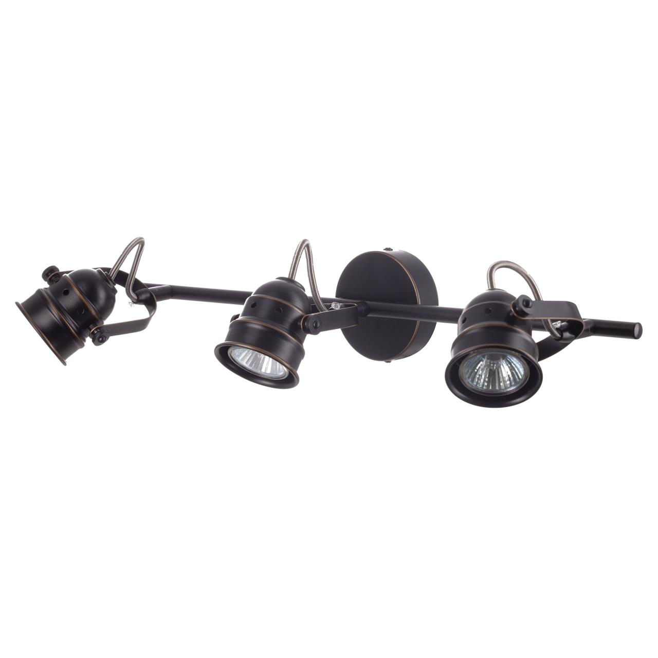 Споты серии «Веймар» с поворотными плафонами удобное и оригинальное решение по освещению пространств ваших помещений. Эта серия светильников настоящая находка для стильных интерьеров. Арматура светильника покрашена в тёмно-коричневый цвет, и декорирована медными вставками. За счёт поворотных плафонов и пропорциональной конструкции светильник настенно-потолочный. Поворотный механизм спота даёт возможность направлять световой поток в любую сторону и даже подсветить стену или потолок за самим светильником. Учитывая, что площадь освещения до 7 квадратных метров, модель можно применять даже как самостоятельный источник света. Особенно хорошо будет смотреться в небольших кухнях или в вытянутых коридорах. В качестве настенного светильника особенно эффективен, как подсветка зеркал, картин, приличных по размеру рабочих зон. В комплект входят галогенные лампы GU10 на 50 ватт. Данные лампы предоставляются в комплекте в демонстрационных целях, гарантия на них не распространяется.