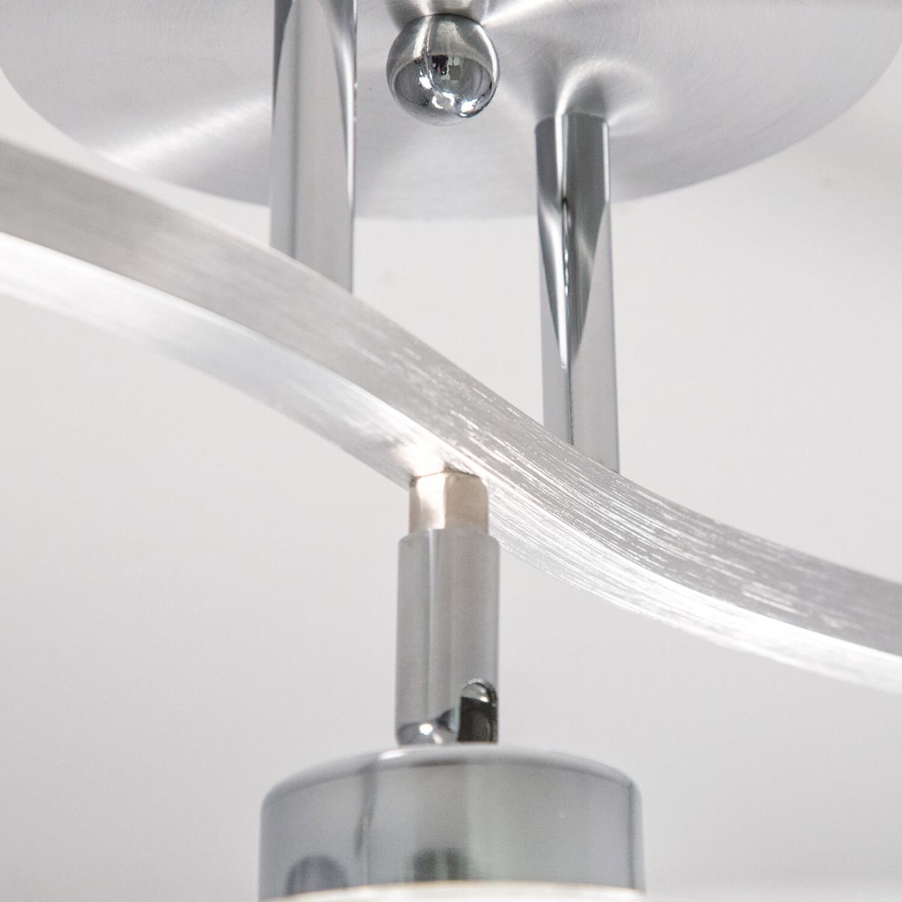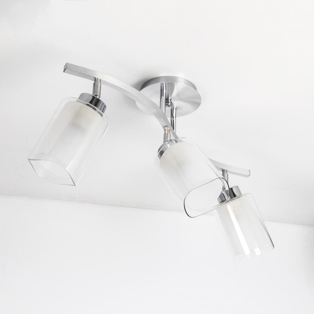 У светильников коллекции «Аэлита» есть шарниры, с помощью которых возможно направлять плафоны в разные стороны. С помощью поворотных плафонов можно как распределить свет в комнате равномерно, так и видоизменить дизайн светильников так, как вам это больше всего понравится. Серия отлично подойдет для таких мест как гостиная, кабинет, прихожая, спальня. Плафоны выполнены из стекла. Основание светильника - высококачественный металл. Плафон состоит из двух частей: прозрачной внешней и полупрозрачной внутренней. Прозрачная часть плафона очень облегчает внешний вид всей конструкции, за счёт неё светильники смотрятся очень изящно. Полупрозрачная внутренняя часть плафона даёт возможность добиться максимальной яркости, но вместе с тем свет мягкий, рассеянный. Цвет основания выполнен в цвете алюминий и хром, который отлично подойдет для любых решений интерьера. В конструкции используются качественные термостойкие патроны, позволяющие применять лампы накаливания до 75 ватт включительно, соответственно энергосберегающие или светодиодные лампы можно применять любые, без ограничения по мощности. Светильник имеет защиту от влаги и пыли — IP20 и предназначен для использования в домашних интерьерах со средней влажностью. Трёх рожковая модель универсальна тем, что её можно смонтировать, как по длинной стороне комнаты, так и поперёк помещения. Иногда идеальное решение – монтаж по диагонали, из угла в угол. Площадь освещения данной модели до 11 квадратных метров.