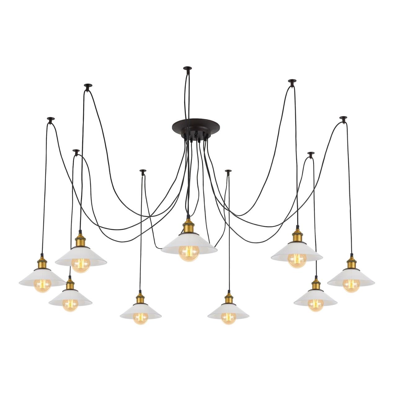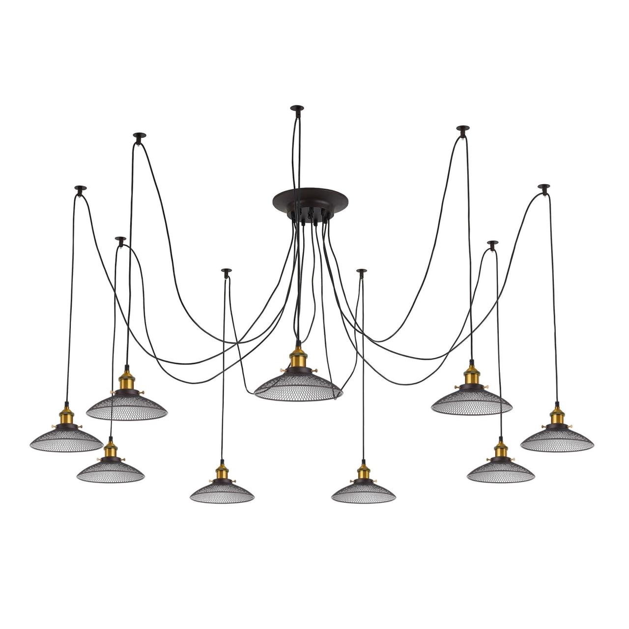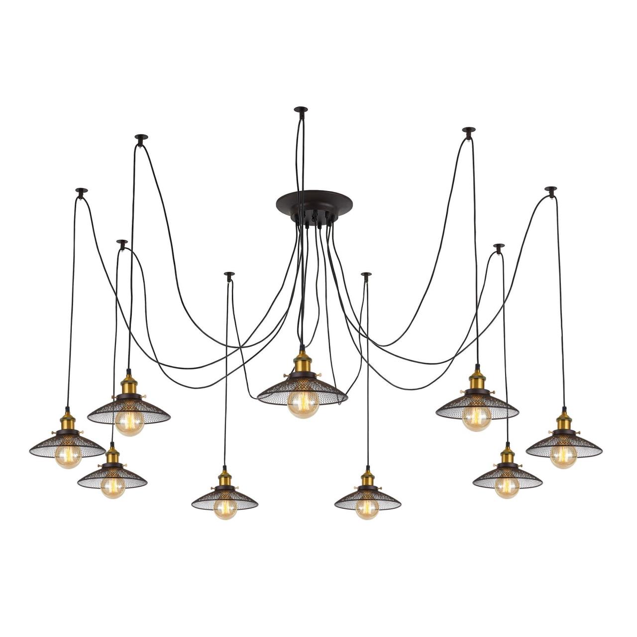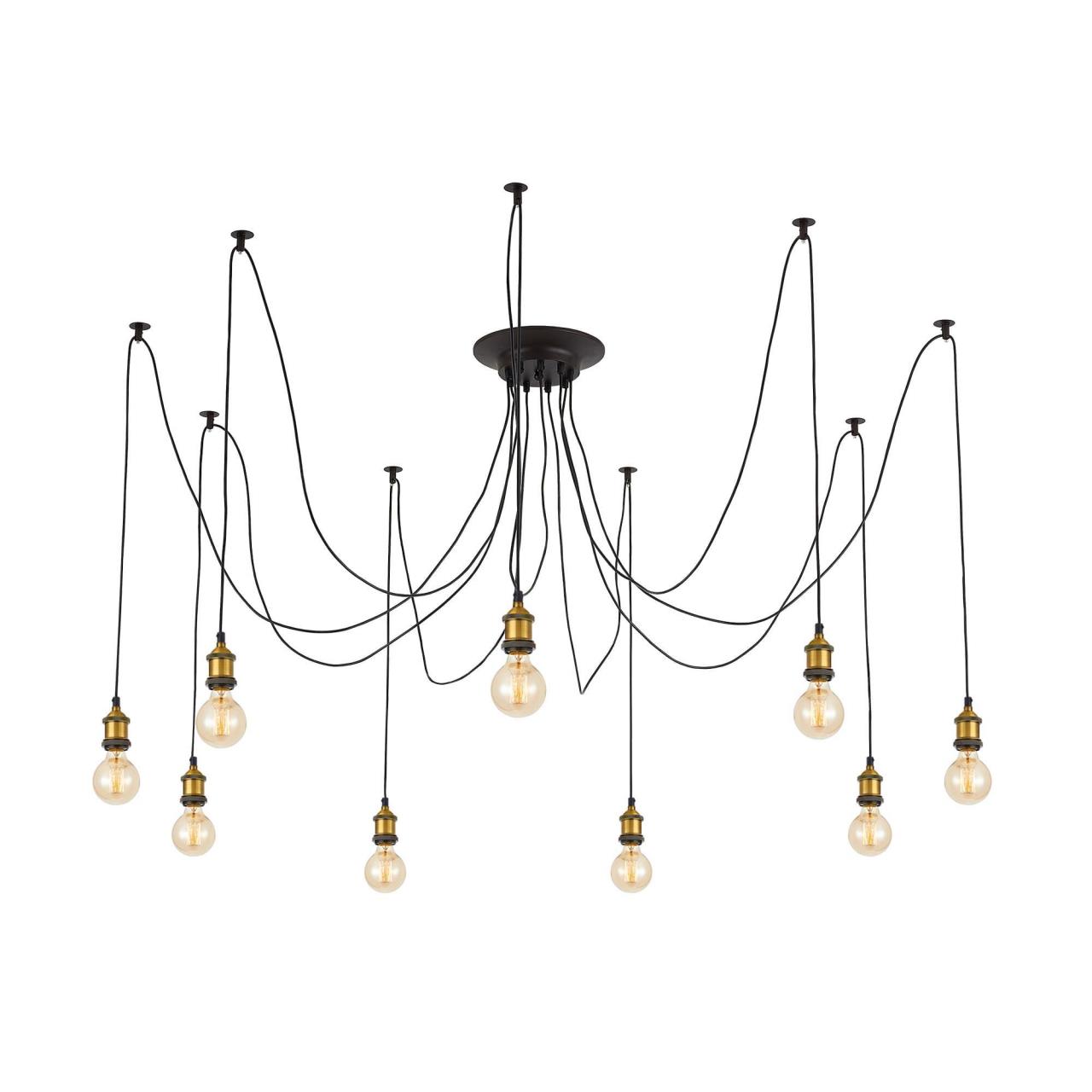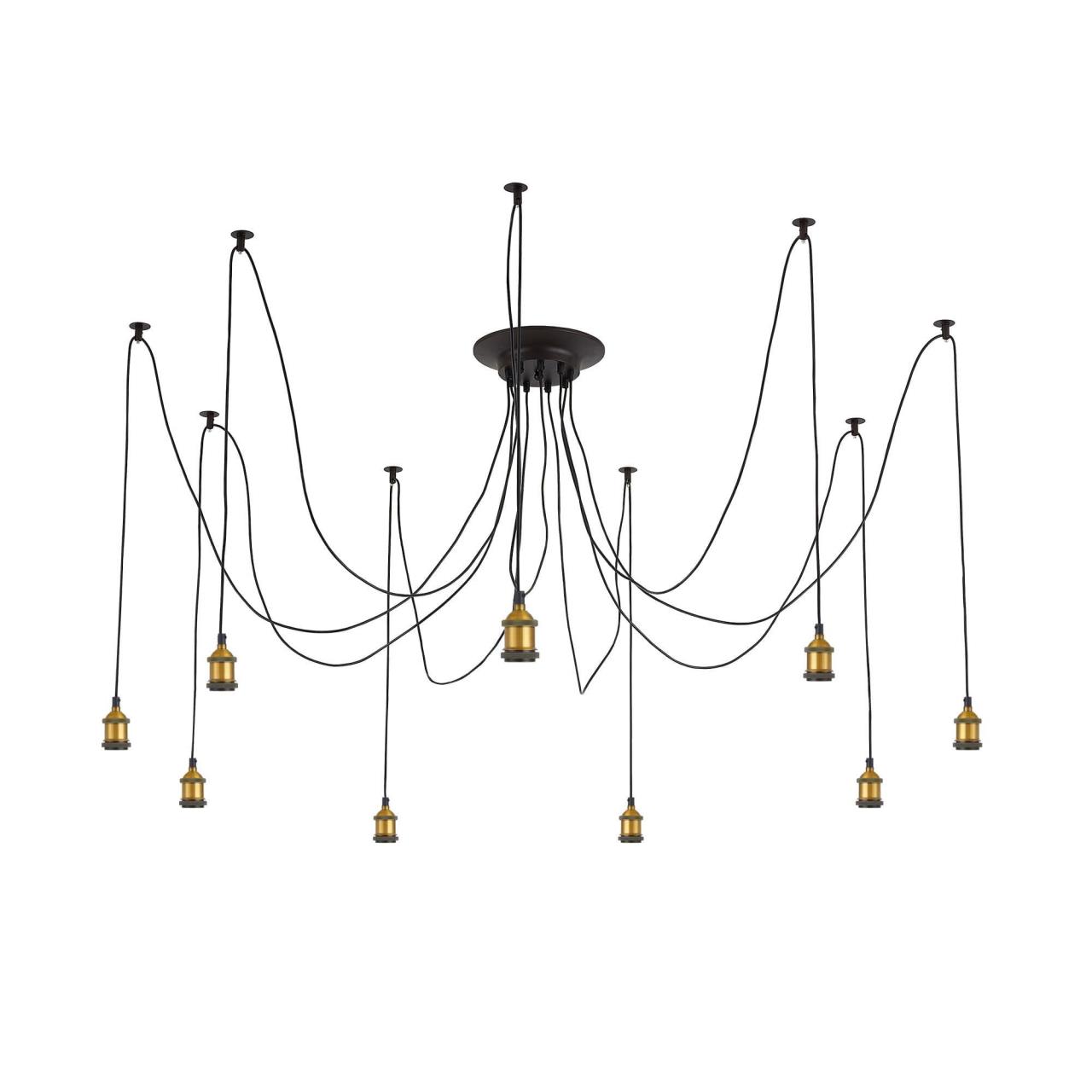 Люстра c многоточечным креплением проводов к потолку, длина провода 215см. Точеный стакан патрона, цвет - старая бронза.