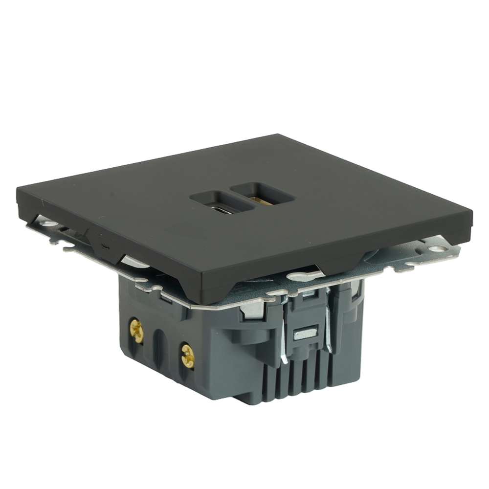 Розетка STEKKER RST10-5115-05 на USB Type A + Type C гнездо, -, -. Материал: поликарбонат, латунь, сталь, цвет черный уголь, soft touch, размер 71*71*41мм. Номинальное напряжение 250, номинальный ток 3A, диапазон рабочих температур 0..+35°C, 20