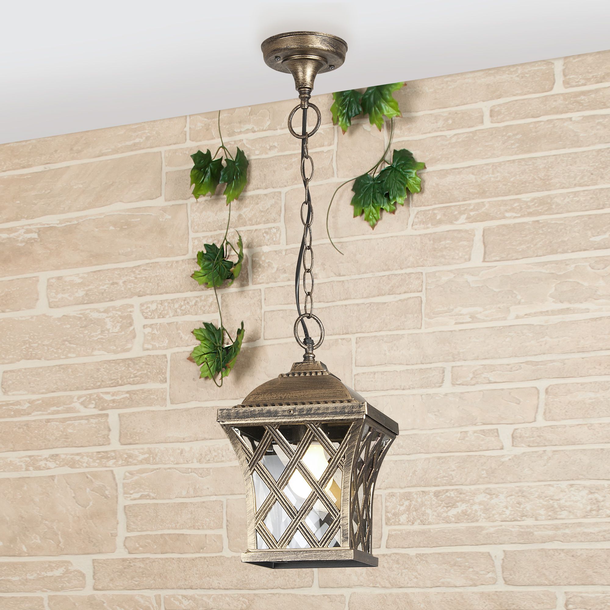 Уличный подвесной светильник Cassiopeya H черное золото IP44 предназначен для создания дополнительного освещения, а также декоративной подсветки снаружи помещений. Благодаря стеклянному плафону создает мягкое равномерное свечение. В качестве источника света используются сменные лампы с цоколем E27. Патрон рассчитан на максимальную мощность ламп накаливания 60 Вт.