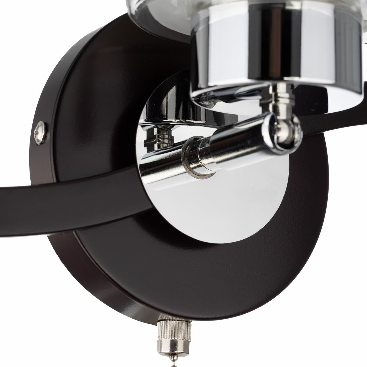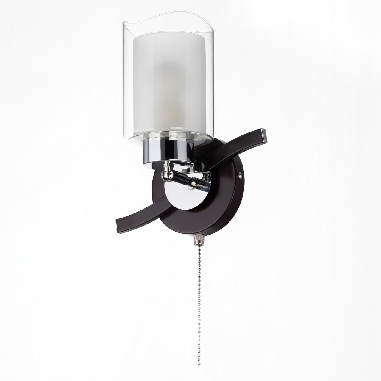 Бра настенная серии Фортуна выполнена в цвете венге с декоративными хромовыми элементами. Плафон оснащен поворотным механизмом, что позволяет зафиксировать его в любом положении. Например, плафон можно направить вверх и свет будет более равномерным и рассеянным, либо же повернуть на поверхность, где света нужно больше. Плафоны выполнены из стекла, наружное прозрачное, а внутреннее белое матовое. Светильник оснащен заводским выключателем на основании. Цоколь патрона Е27 с ограничением мощности для ламп накаливания 75 ватт, светодиодные лампочки можно ставить любой мощности. Основание бра сделано из металла. Площадь освещения до 4 квадратных метров. Размер: Ширина 21 см, Высота: 25, Глубина: 12.5см.